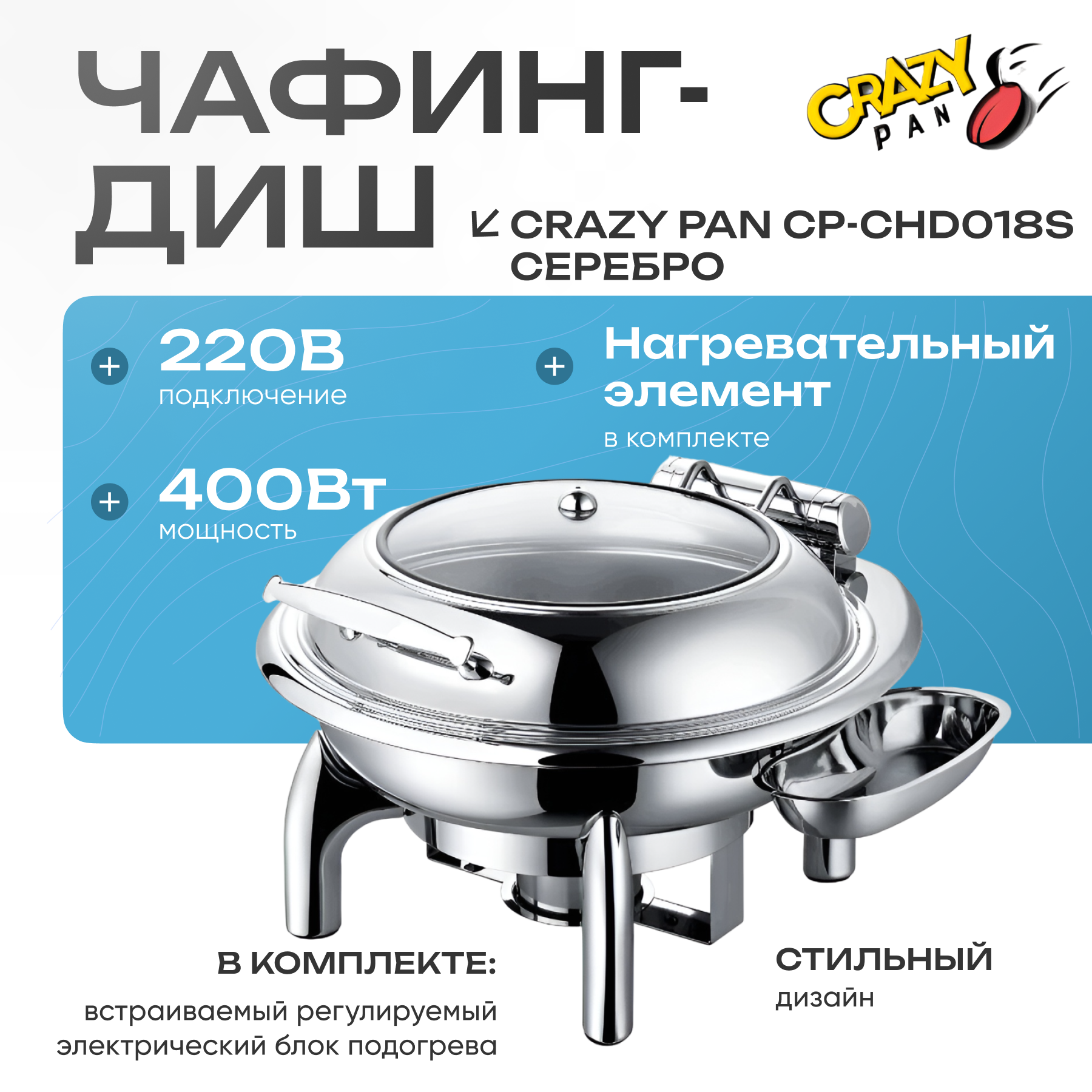 Мармит (чафинг-диш) с подогревом Crazy Pan CP-CHD018S круглый, блок нагрева 400Вт, 220В, 6 литр, нерж, серебро, d39см-65: сравнение цен, характеристики, фото, актуальное наличие и цены.