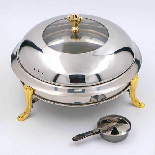 Этот круглый мармит с диаметром 26 см и высотой 22 см идеально подходит для поддержания температуры блюд как в домашних условиях, так и в ресторанах или кафе. Он обеспечивает равномерное нагревание и сохранение тепла благодаря прочному корпусу из нержавеющей стали, что делает его универсальным и долговечным.