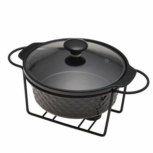 Такой керамический мармит с подставкой имеет привлекательный внешний вид и очень удобен в использовании, благодаря чему он непременно украсит Ваш праздничный стол.