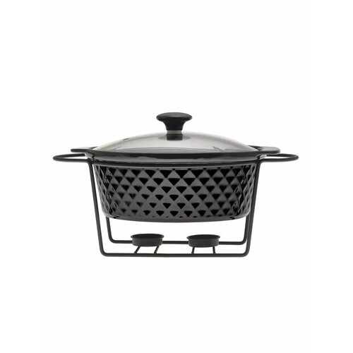 Такой керамический мармит с подставкой имеет привлекательный внешний вид и очень удобен в использовании, благодаря чему он непременно украсит Ваш праздничный стол.