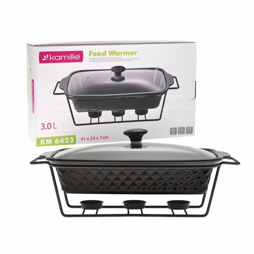 Мармит керамический 3 л с подогревом от свечи прямоугольный Kamille KM 6422