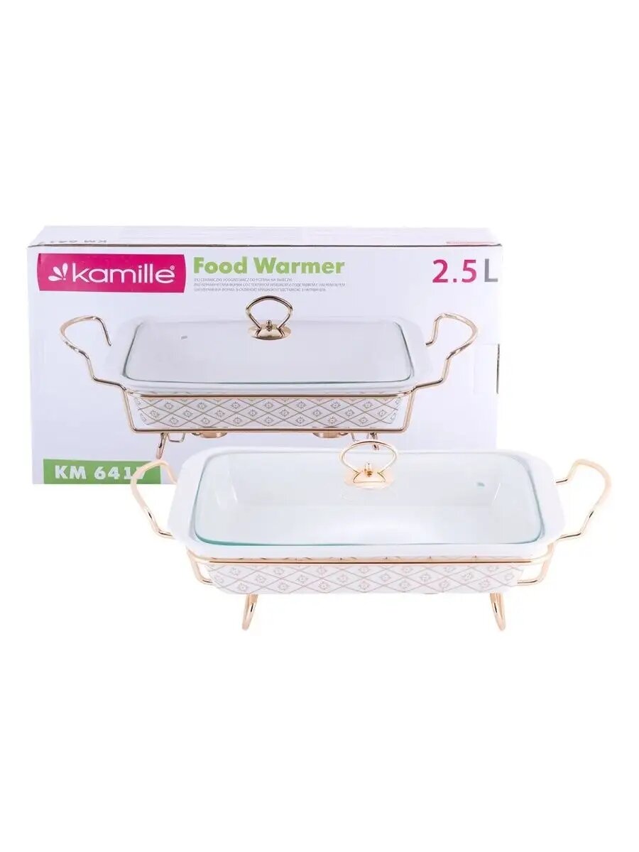 Купить Мармит керамический прямоугольный 2,5 л с позолотой Kamille KM-6417 (36,5х23х6 см.) (2,5 л. / золотистый) с доставкой по всей России.