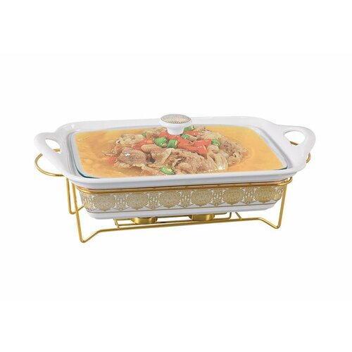 Купить Мармит с подогревом Zeidan 2,5 л 38см керамика белый с золотом на подставке прямоугольная форма с доставкой по всей России.