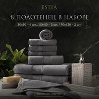 Estia «Мартос» комплект полотенец 30х50-4/50х80-2/70х130-2 хлопок, светло-серый 500 г/м2, 8 пр.: сравнение цен, характеристики, фото, актуальное наличие и цены.