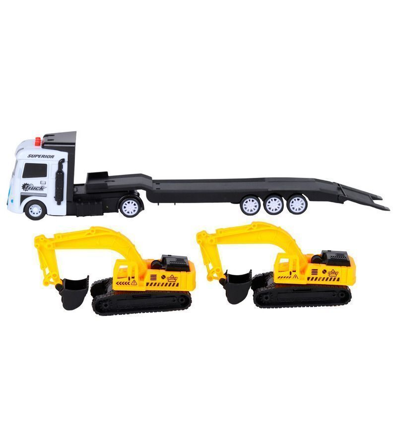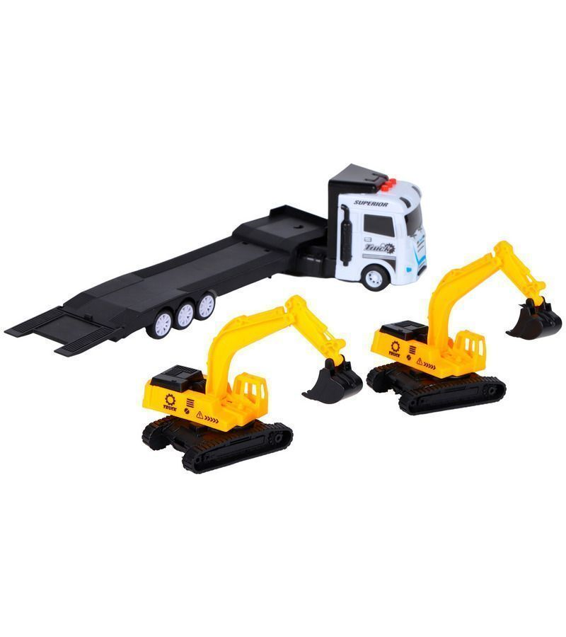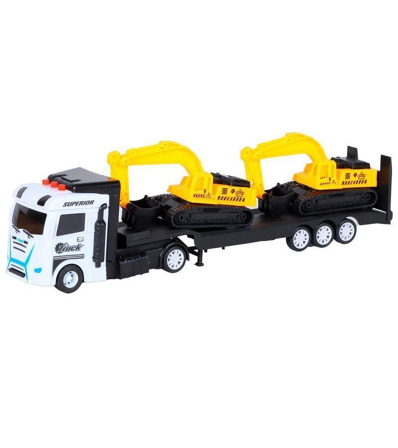 Купить Машина AUTODRIVE Автовоз фрикционный белый со светом и звуком + 2 экскаватора, в/к 35*6,5*12 см с доставкой по всей России.