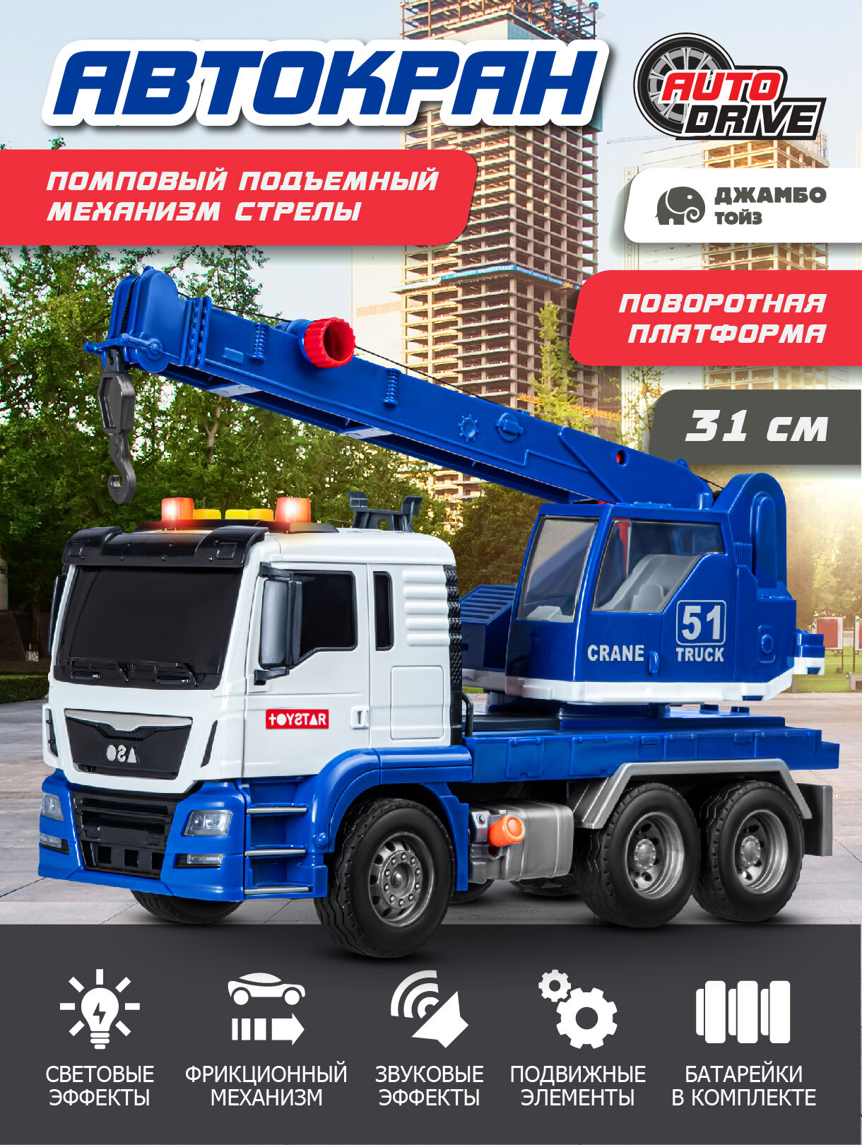 Машина фрикционная Автокран, подвижные элементы, звук, свет, синий, JB0405101: сравнение цен, характеристики, фото, актуальное наличие и цены.