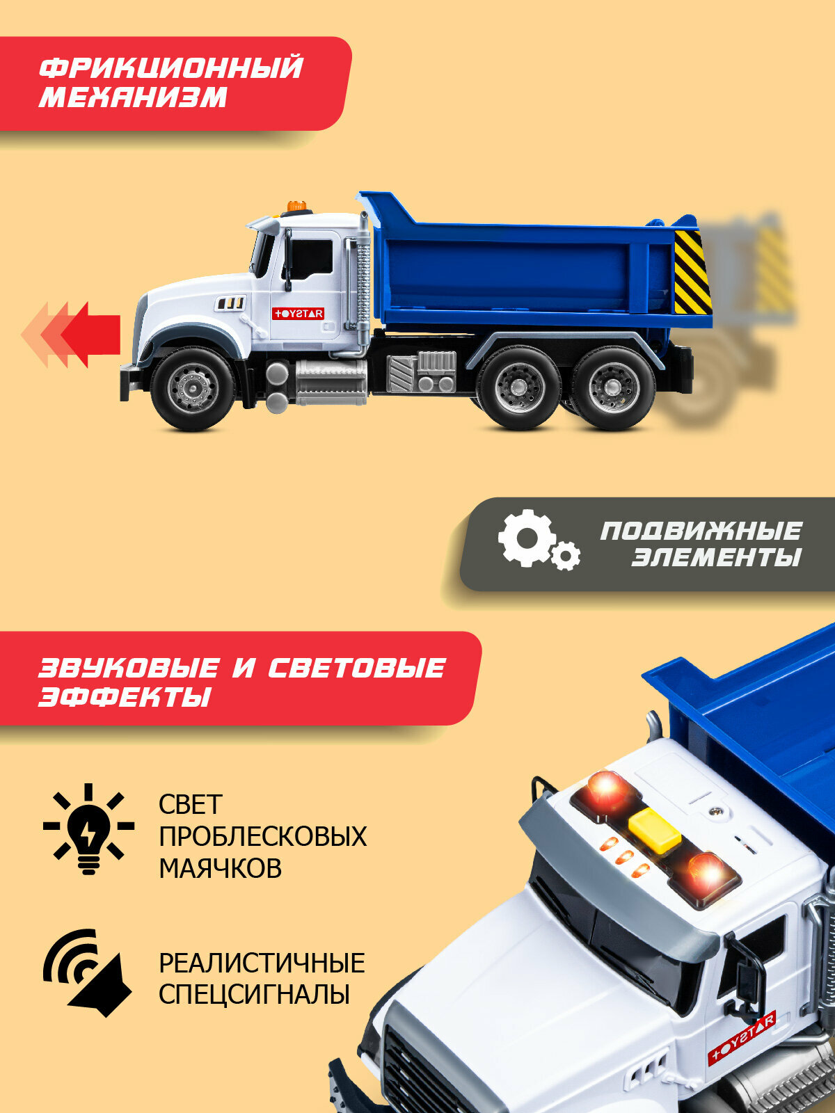 Купить Машина фрикционная Самосвал, кузов поднимается/откидной борт, звук, свет, синий, JB0405092 с доставкой по всей России.