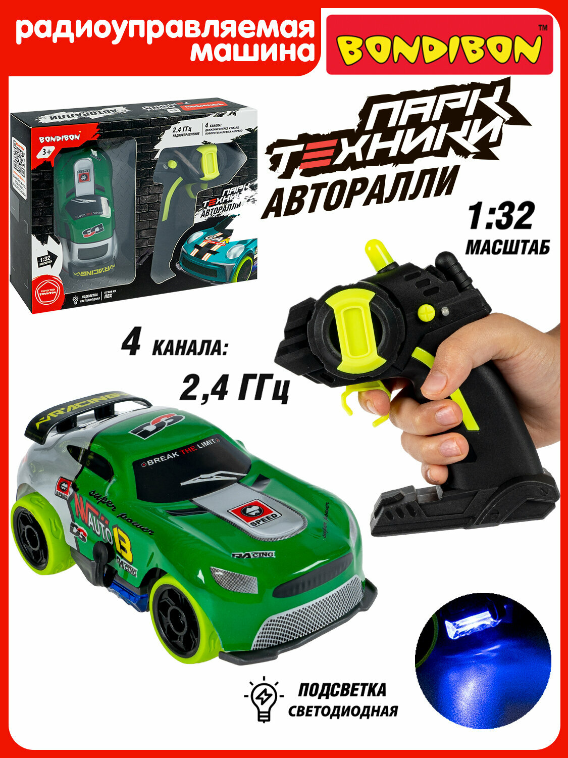 Машина на пульте радиоуправления гонка «авторалли» корпус ПВХ с подсветкой, 1:32, зеленая, Парк Техники Bondibon: сравнение цен, характеристики, фото, актуальное наличие и цены.