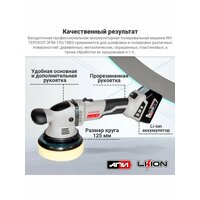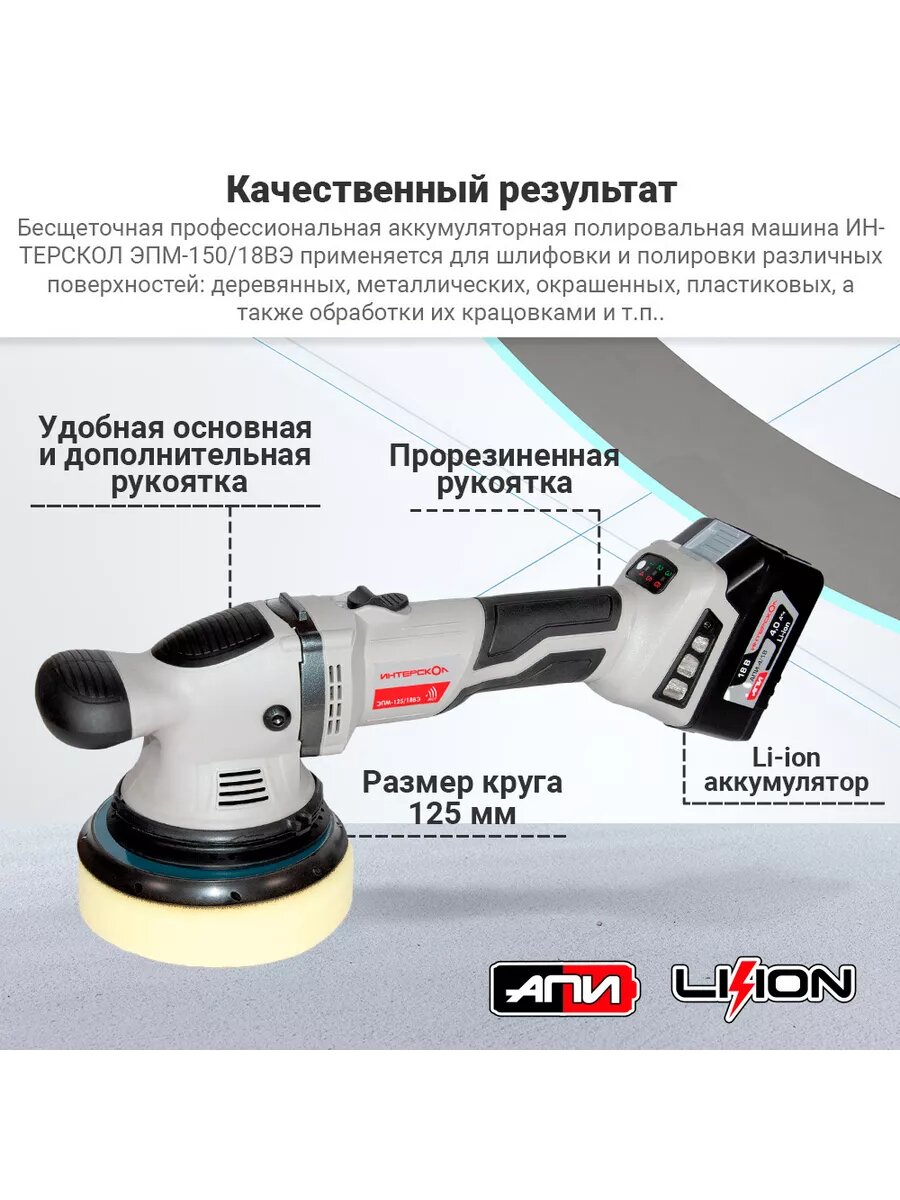 | Комплектация | Угловая полировальная машина -1 шт., Резиновый полировальный диск с системой Velcro - 1 шт., Поролоновый полировальный круг - 1 шт., Тканевый полировальный круг - 1 шт., Комплект крепежа - 1 шт., Коробка картонная - 1 шт., Руководство по эксплуатации и инструкция по безопасности, Гарантийный талон - 1 шт., ЗУ - нет в комплекте, АКБ - нет в комплекте. |