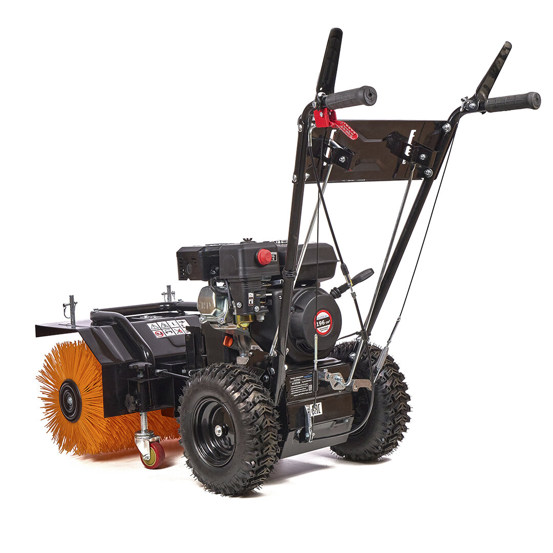 Высокопроизводительная и удивительно мощная подметально-уборочная машина может использоваться не только для уборки территории от пыли и грязи летом, но и благодаря дополнительным насадкам, таким как: бункер, снегоочиститель и снегоочиститель с отвалом - будет востребована в любое время года. Большая щетка диаметром 345 мм и шириной 600 мм значительно облегчает уборку тротуаров и подъездных путей - грязь, сор, листву и слякоть можно подмести за несколько минут. Данная модель проста в эксплуатации мобильна и маневренна, а благодаря специальному профилю колес, машина очень устойчива. Весь собранный мусор или накопившийся после зимы реагент и песок сразу же попадают в бункер для мусора и грязи. Запуск двигателя осуществляется через пусковую систему "Электростарт". Подметальная машина имеет собственный приводной механизм, а скорость движения вперед или назад можно индивидуально корректировать передачами - 5 переднего хода и 2 передачами заднего хода.