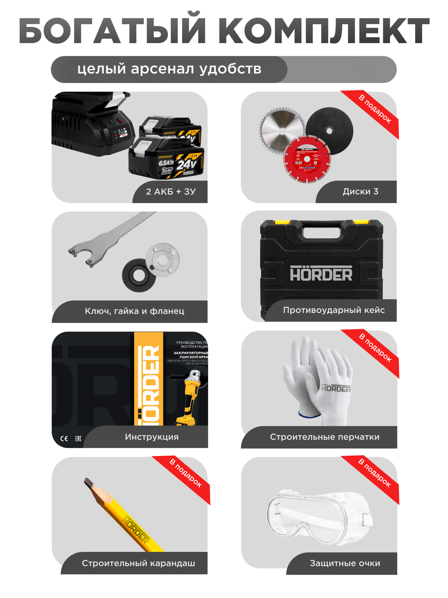 Машина шлифовальная угловая HÖRDER HAG 24-125 Li2 УШМ в кейсе с двумя аккумуляторами 24В 4,5 Ач 12000 об/мин: сравнение цен, характеристики, фото, актуальное наличие и цены.