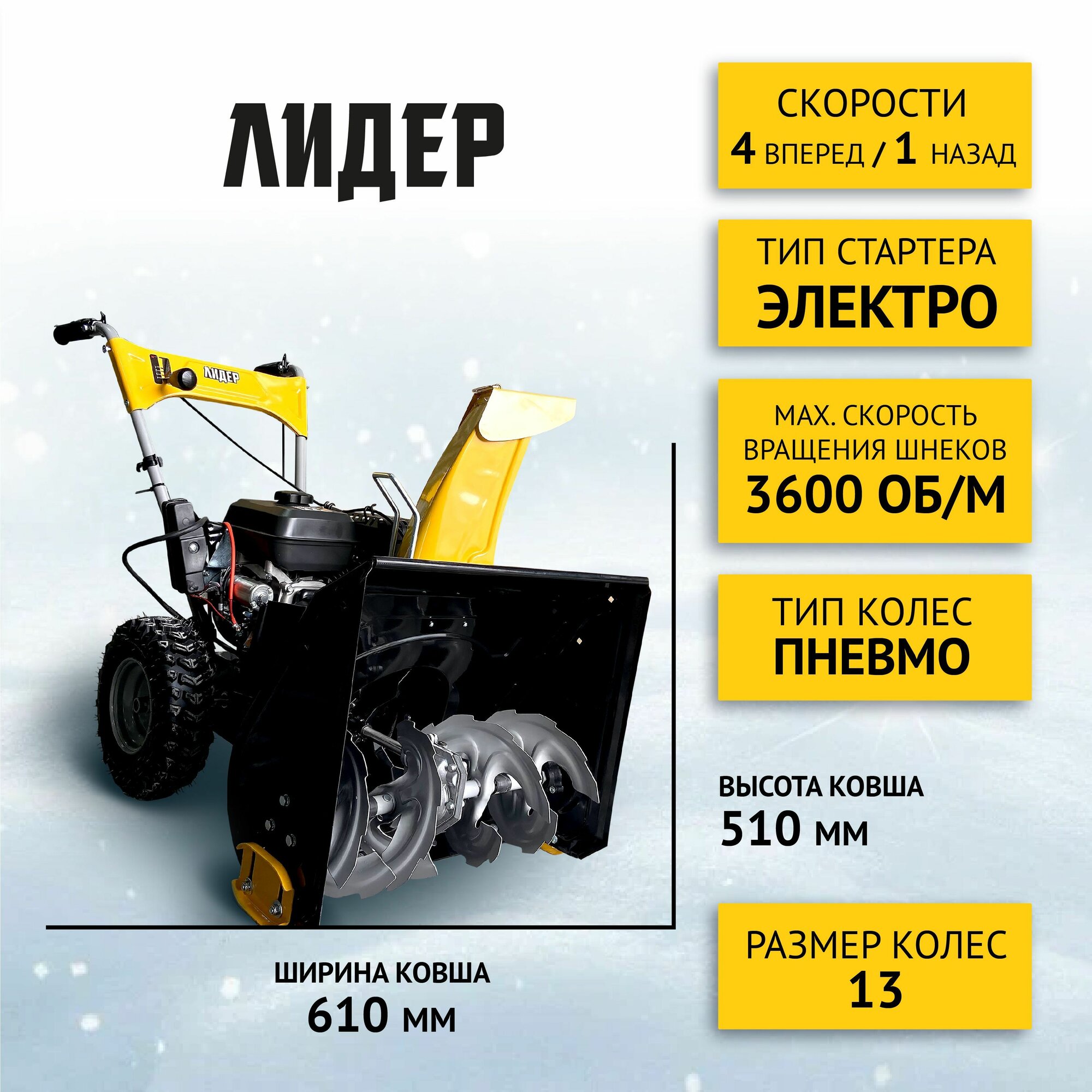 Машина снегоуборочная бензиновая со шнеком для уборки снега лидер СМБ-7.0/610/510Е, самоходная, электростартер: сравнение цен, характеристики, фото, актуальное наличие и цены.