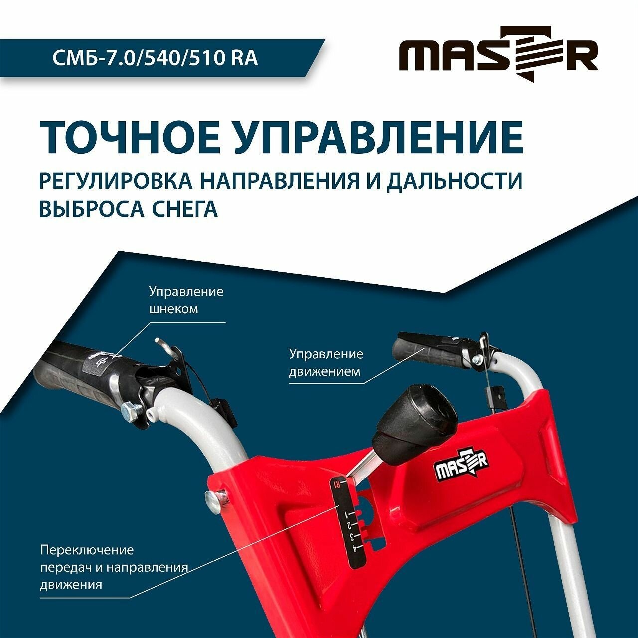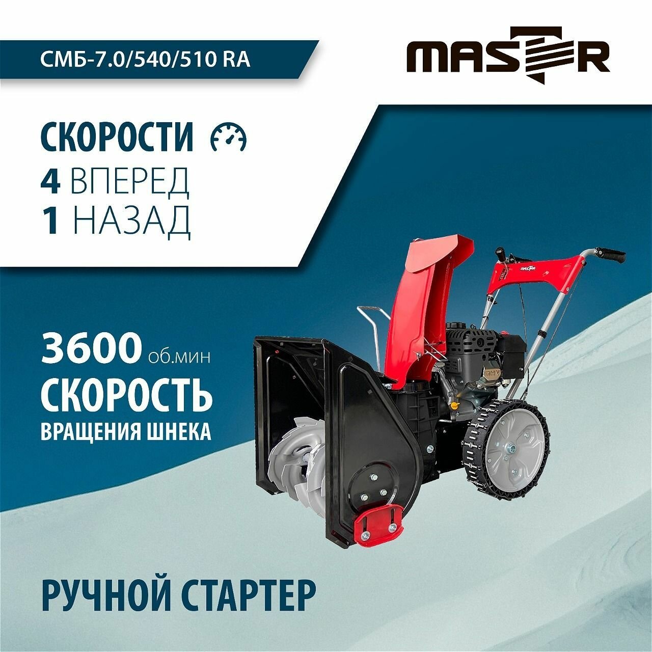 Машина снегоуборочная бензиновая со шнеком для уборки снега MASTER СМБ-7.0/540/510RA, самоходная: сравнение цен, характеристики, фото, актуальное наличие и цены.