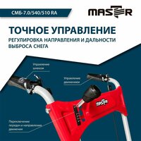 Купить Машина снегоуборочная бензиновая со шнеком для уборки снега MASTER СМБ-7.0/540/510RA, самоходная с доставкой по всей России.