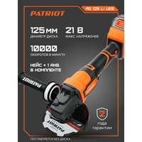 Купить Машина углошлифовальная аккумуляторная PATRIOT AG 125 Li UES, 21В, 4Ач, диск 125мм с доставкой по всей России.