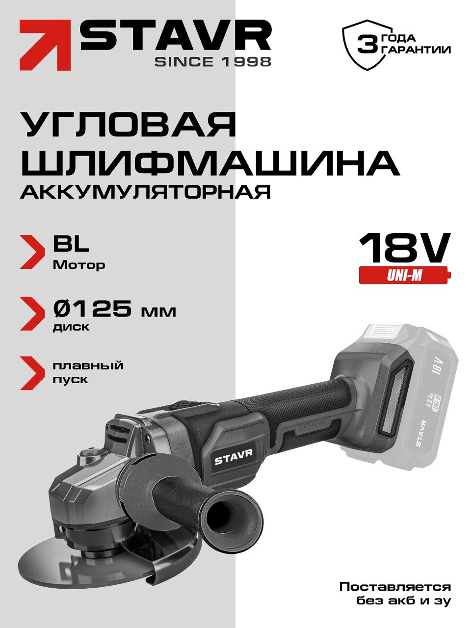 Машина углошлифовальная аккумуляторная Stavr SAG 18-125BL (УШМ), 18V UNI-M, BL без З/У И АКБ: сравнение цен, характеристики, фото, актуальное наличие и цены.