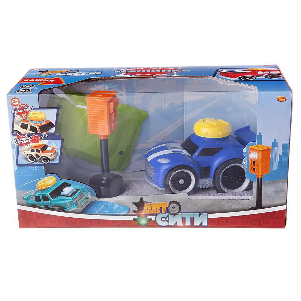 Купить Машинка ABtoys АвтоСити с кнопкой запуска, блоком-препятствием, камерой контроля, на батарейках, синяя с доставкой по всей России.
