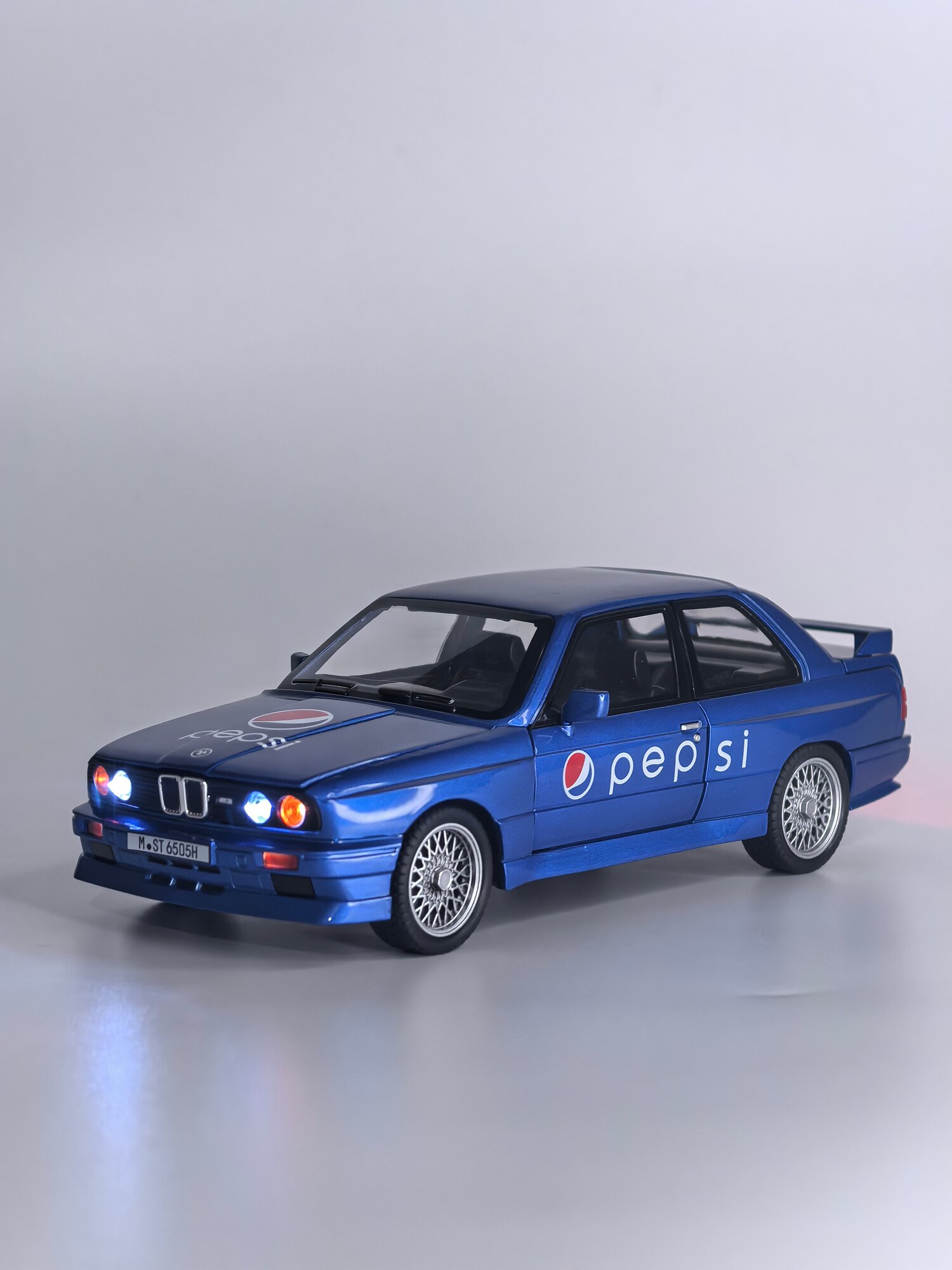 Купить Машинка BMW M3 Pepsi 1988 металлическая, модель 1:24, свет/звук/гудок при нажатии на руль, премиальное качество с доставкой по всей России.