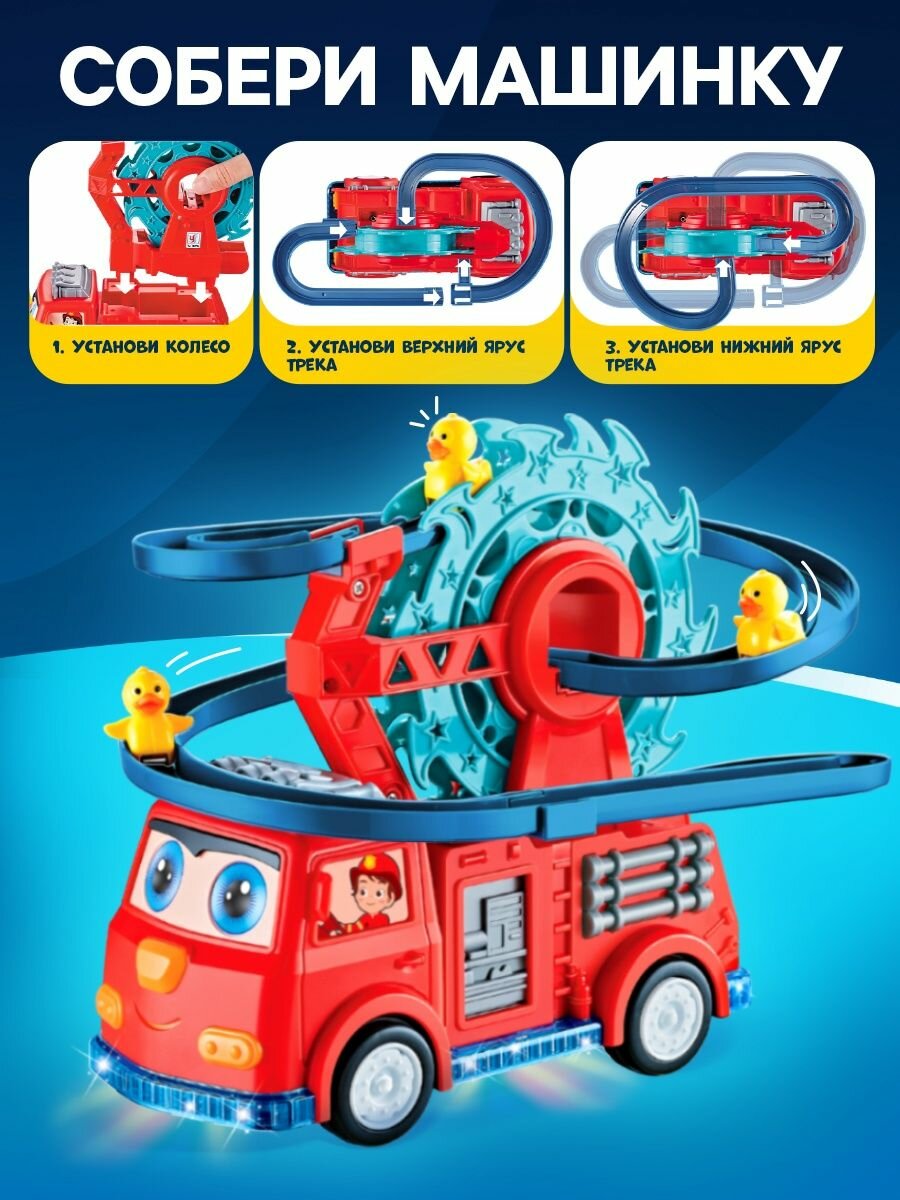 Купить Машинка детская игрушка с бегающими утятами / интерактивная пожарная машина / со светомузыкой с доставкой по всей России.