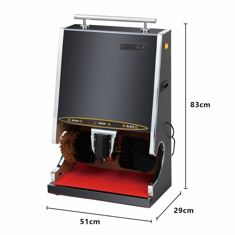 Название: Машина для блеска обуви Режим работы:Автоматическая индукция Цвет корпуса: титановая пластина из нержавеющей стали Размер продукта: 73X51X26cm Напряжение: 220V Мощность: 60 Вт Вращение: 1200 об/мин Шум: 60дб Вес продукта: 16 кг Щетка: сферическая щетка, с обувным воском, супер адсорбция, полировка порошкового покрытия материала Применение: отели, бизнес-клубы и т.д. Входящие в комплект компоненты: полировщик Скорость :1200 об/мин