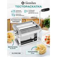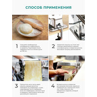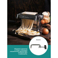Предлагаем вашему вниманию тестораскаточную машину для домашней лапши из яичного крутого теста. В комплект поставки входит струбцина, которой устройство надежно крепится к столешнице, и рукоятка, которой оно приводится во вращение. Шестерни из закаленной стали обеспечивают длительный срок службы изделия. Тестораскатка имеет прочный корпус из хромированной стали и два раскатывающих валка из никелированной стали. Длина валков составляет 180 мм, зазор между ними регулируется в пределах от 0,5 до 3 мм. Машинка для раскатки теста оснащена двумя встроенными группами роликовых ножей для нарезки наиболее популярных видов свежей пасты: