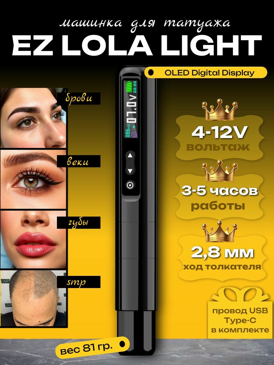 Машинка для перманентного макияжа беспроводная EZ Lola Light, аппарат для татуажа с регулировкой мощности и частоты ударов иглы: сравнение цен, характеристики, фото, актуальное наличие и цены.