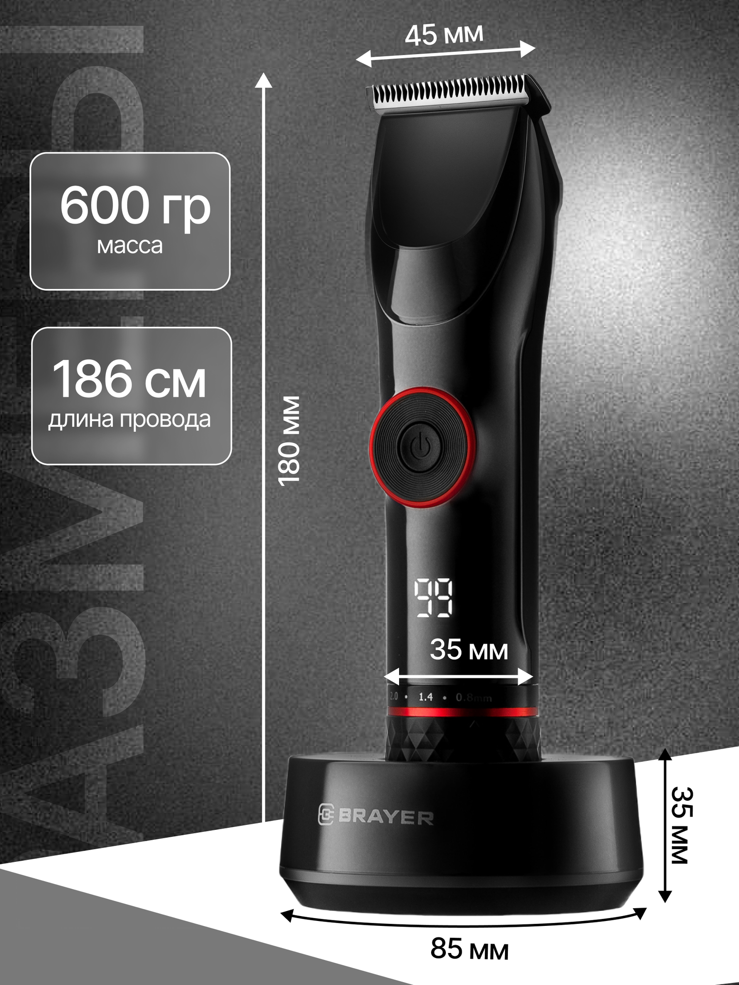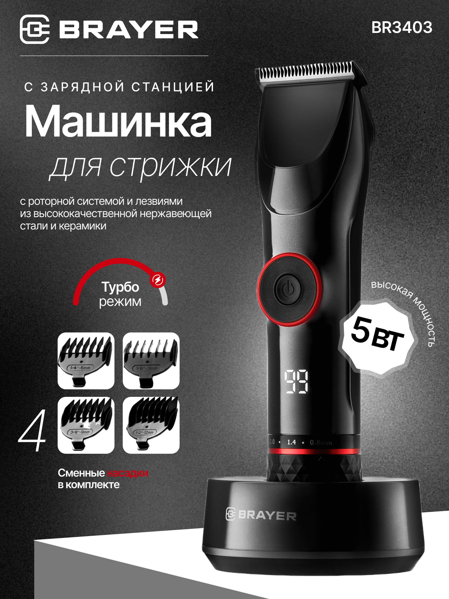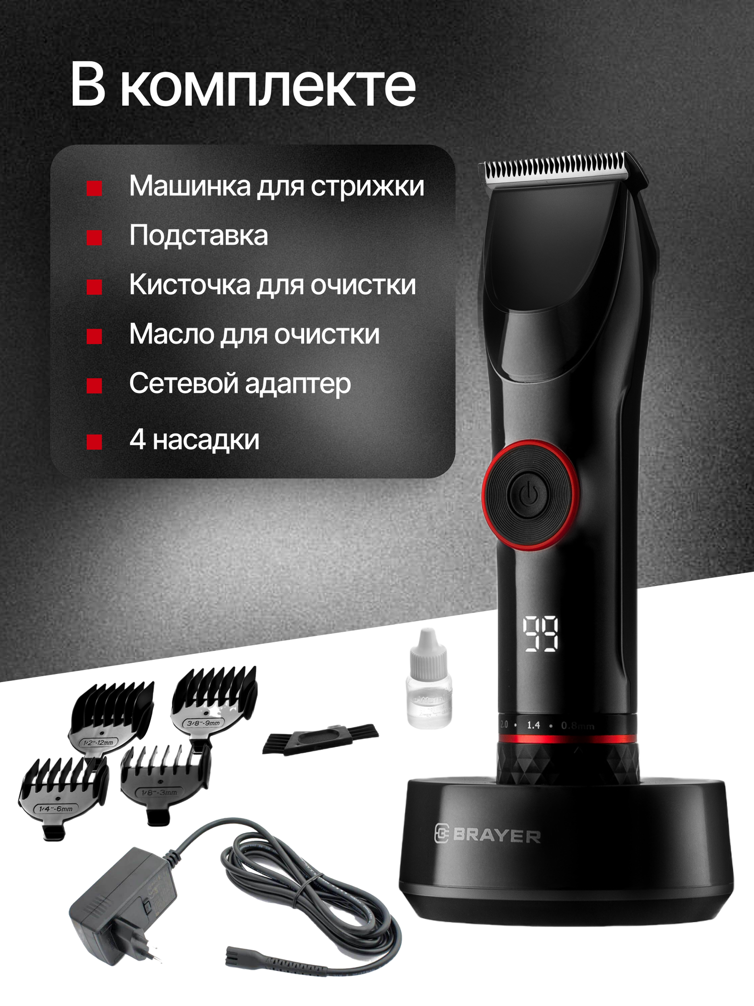 Купить Триммер, машинка для стрижки волос, бороды BRAYER BR3403,5Вт, LED-дисплей, 4 насадки(3 мм,6 мм,9 мм,12 мм), турбо с доставкой по всей России.
