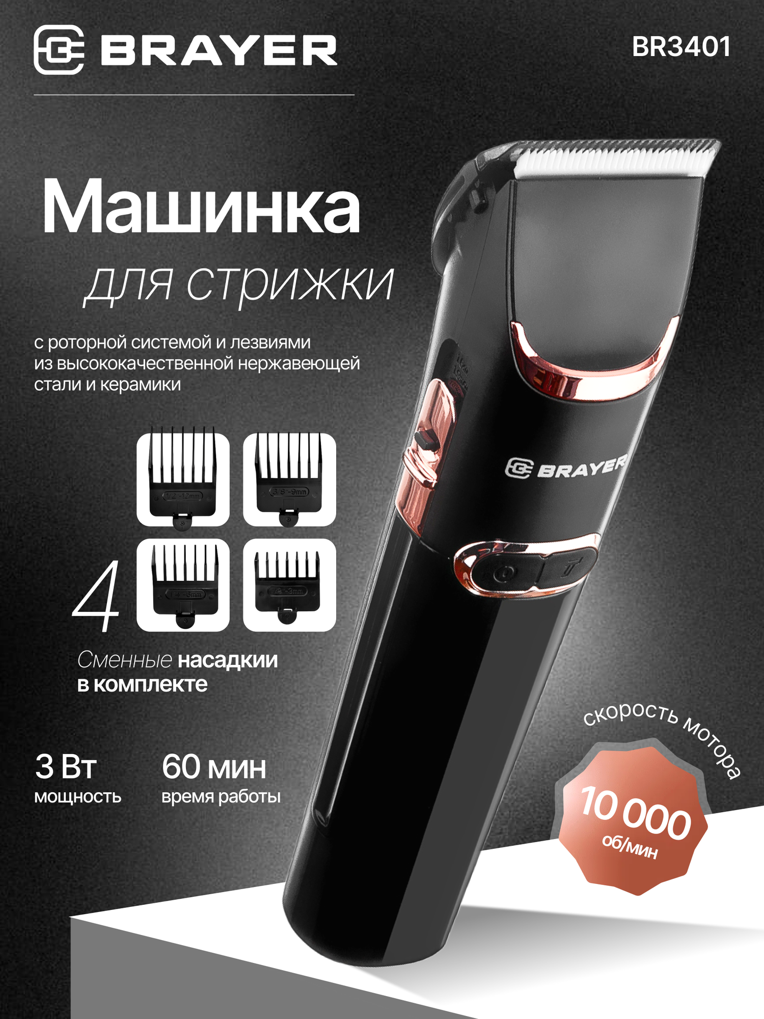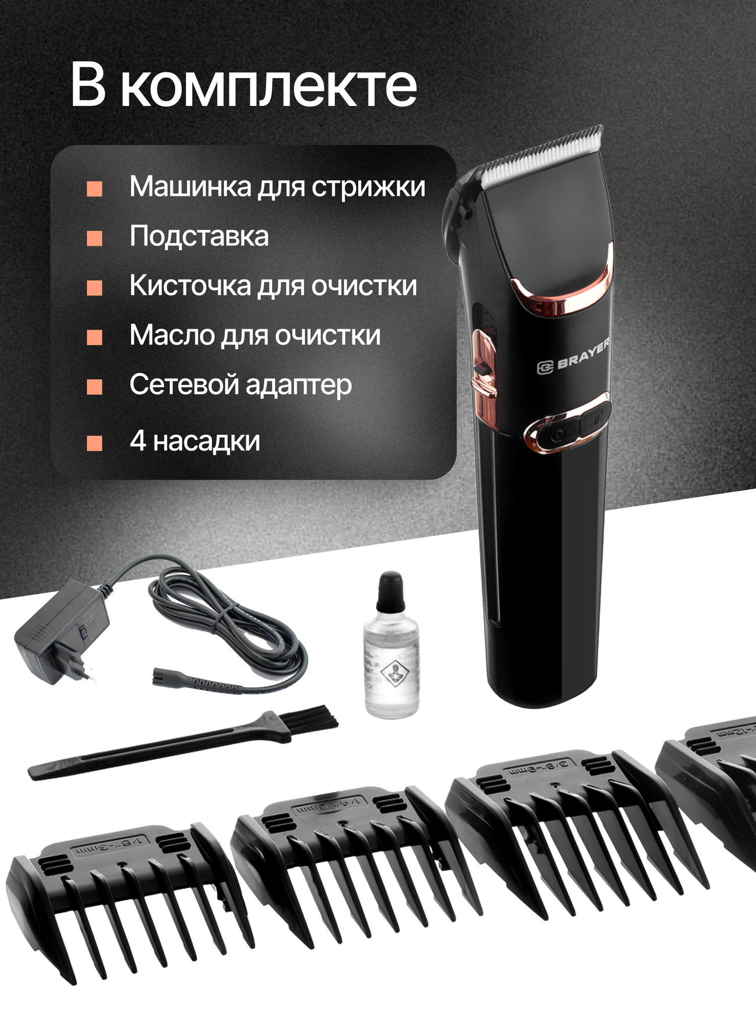 Триммер, машинка для стрижки волос, бороды BRAYER BR3401, LED-дисплей, 4 насадки (3 6, 9, 12мм), 3Вт, база, черный: сравнение цен, характеристики, фото, актуальное наличие и цены.