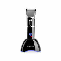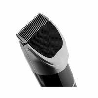 Фиксированные лезвия из высококачественной стали с титановым покрытием Керамические подвижные лезвия Установка длины поворотом корпуса 0.8 мм, 1.4 мм, 2.0 мм. 4 съёмные насадки 3 мм, 6 мм, 9 мм, 12 мм. Турборежим Время заряда батареи 1,5 часа Время непрерывной работы 1 час LED-дисплей Поворот базы на 360 °С Индикация уровня заряда Возможность работать от сети и от аккумулятора Литиевая батарея 1*700 мАч Удобная подставка для подзарядки и хранения Аксессуары: щёточка, смазочное масло Мощность 3 Вт. Электропитание: 220-240 В, ~50-60 Гц.