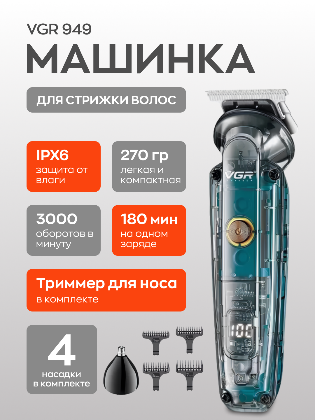 Машинка для стрижки VGR-949, с триммером, аккумуляторная, нержавеющая сталь: сравнение цен, характеристики, фото, актуальное наличие и цены.
