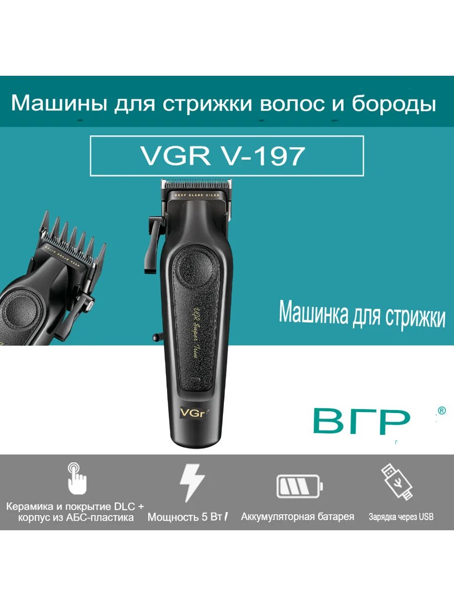 Машинка для стрижки VGR V-197, для волос и бороды, мощность 5 Вт, 7000 об/мин: сравнение цен, характеристики, фото, актуальное наличие и цены.