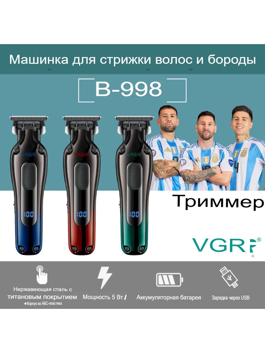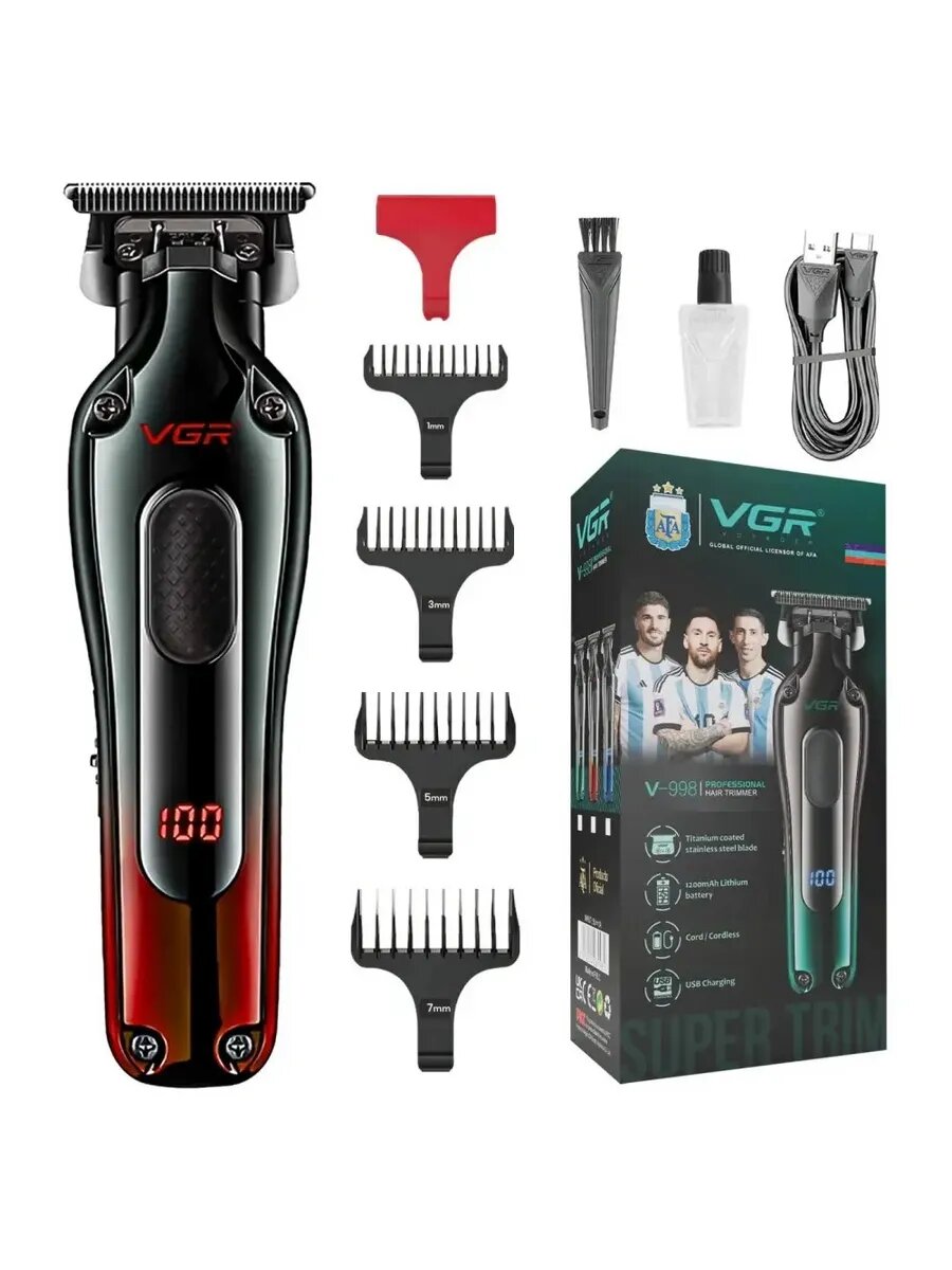 Машинка для стрижки VGR V-998, для волос и бороды, 4 насадки, LED-дисплей, красная: сравнение цен, характеристики, фото, актуальное наличие и цены.