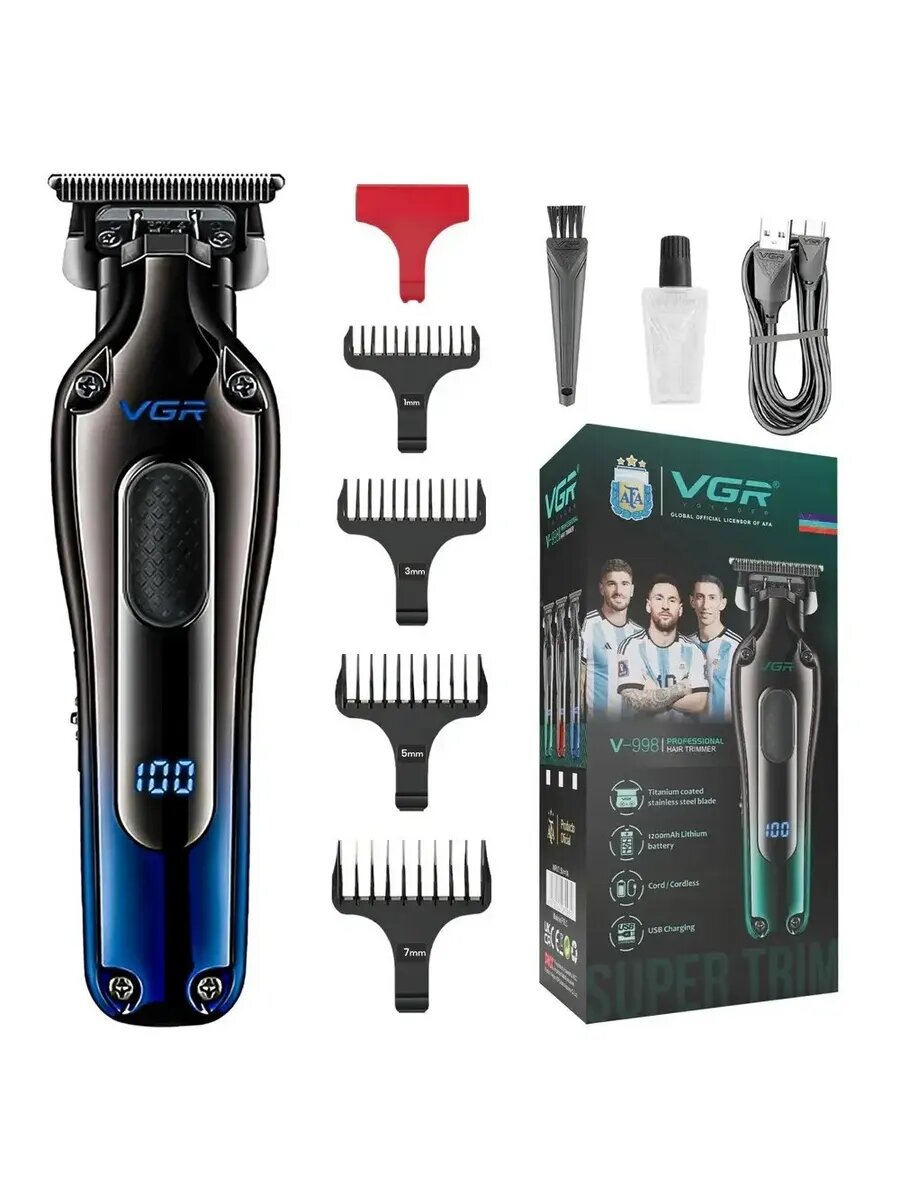 Машинка для стрижки VGR V-998, для волос и бороды, 4 насадки, LED-дисплей, синяя: сравнение цен, характеристики, фото, актуальное наличие и цены.