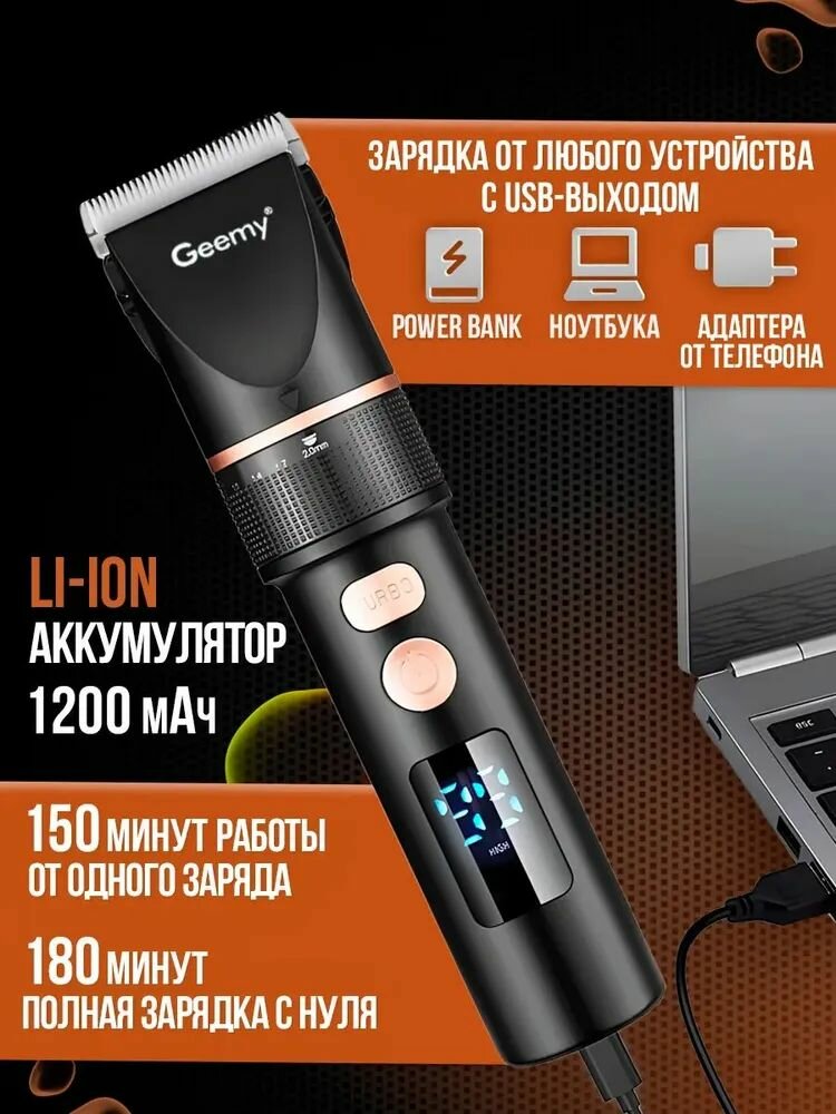 Машинка для стрижки волос Geemy GM-6609 легкая и компактная, почти не ощущается в руке. Работает от аккумулятора. Заряжается очень быстро и зарядки хватает приблизительно на два часа работы. Бесшумная. Корпус изготовлен из пластика. Быстросъемный ножевой блок изготовлен из нержавеющей стали. С легкостью можно очистить или заменить нож, при необходимости. Высококачественная сталь позволяет выполнять точные работы максимально близко к коже. В комплектацию входят насадки, щеточка для чистки, специальное масло для ножей, USB-кабель для зарядки. Рекомендуется периодически смазывать лезвия для качественной работы машинки. После нанесения масла необходимо, чтобы машинка поработала несколько секунд для равномерного распределения смазки по поверхности. Керамические ножи имеют значительное преимущество перед обычными стальными ножами в первую очередь значительным эксплуатационным сроком, так как изготовлены из материала на основе оксида циркония, который по своей твердости намного превышает твердость стальных изделий и обладают значительной износостойкостью режущей кромки. Керамические лезвия не боятся воды, агрессивных моющих средств которые повреждают режущую кромку обычных стальных ножей.