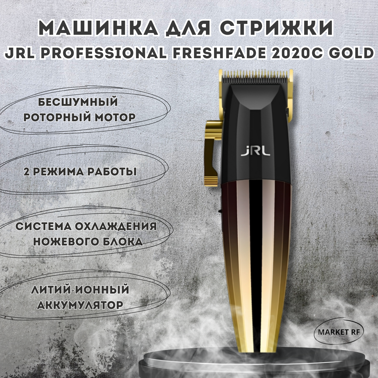 Профессиональная аккумуляторно-сетевая машинка для стрижки волос. Усовершенствованные технологии, постоянная мощность, тихий мотор. Машинка для стрижки волос jRL модель 2020C-G Gold имеет 2 регулируемые скорости 6 000 и 7 200 оборотов в минуту. Работа аккумулятора 4 часа, время зарядки 3 часа. Тип двигателя роторный. Вес 292 г. Особенности и преимущества: Революционное холодное лезвие. Специальный материал сохраняет лезвие прохладным на ощупь, благодаря чему лезвие на 7 градусов холоднее, чем в большинстве машинок для стрижки. Усовершенствованная технология блокировки рычага. Опорная пружина обеспечивает 5 фиксированных регулировок фиксированного уровня с бесступенчатым регулированием, которое поддерживает длительное использование. Литий-ионный аккумулятор. 3 часа зарядки обеспечивает 4 часа автономной работы. Увеличенный диапазон резки. Наше лезвие открывается больше от 0,5 до 3,5 мм (также может быть без зазора), обеспечивая дополнительную длину стрижки без использования насадки-гребня. Тихий мотор. Уровень шума ниже 60 дБ создает тихую рабочую среду. Основные характеристики: Высота среза 0,5-3,5мм Система охлаждения ножевого блока Система восстановления аккумулятора Лезвия из нержавеющей стали/титана Ширина ножевого блока 45мм Турбо-режим Тип мотора роторный Время автономной работы 4 часа Время полной зарядки 3 часа Насадки 1,5мм, 3мм, 4,5мм, 6мм, 10мм, 13мм, 16мм, 19мм, 22мм, 25мм LED индикатор, LCD дисплей