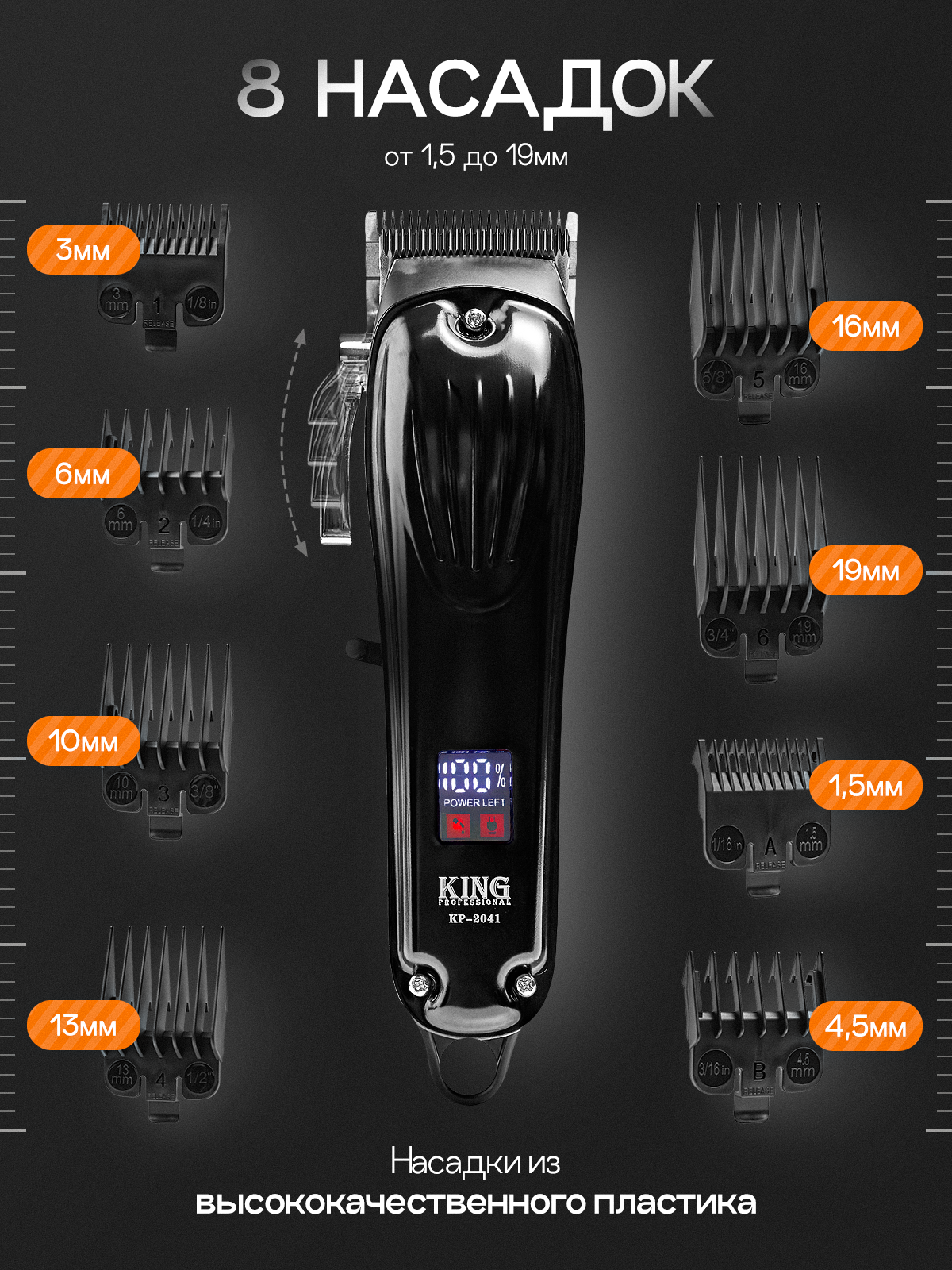 Купить Машинка для стрижки волос KING Professional беспроводная, 15W, 8 насадок с доставкой по всей России. Машинка для стрижки волос KING Professional беспроводная, 15W, 8 насадок: сравнение цен, характеристики, фото, актуальное наличие и цены.