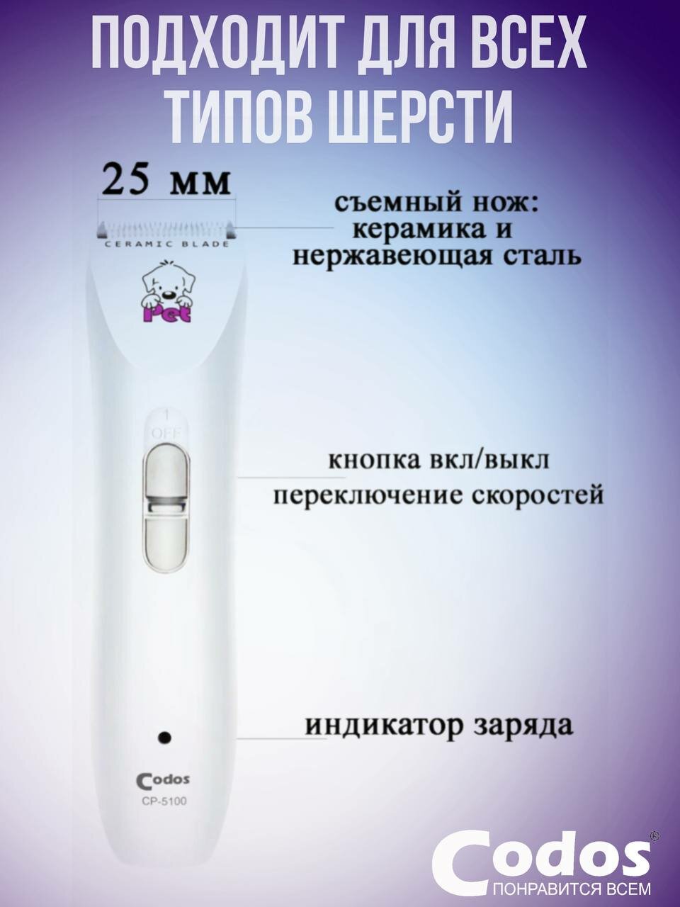 Купить Машинка для стрижки животных Codos СР 5100 триммер для собак и кошек для груминга беспроводная с доставкой по всей России.