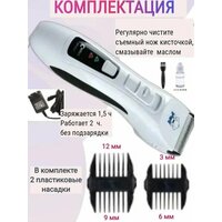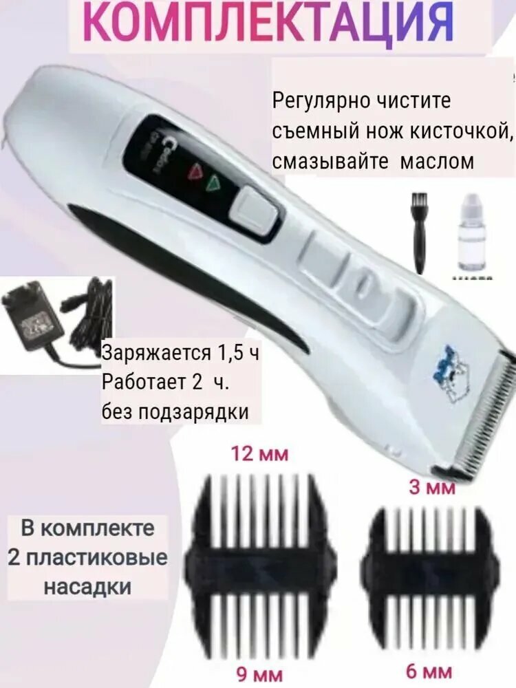 | Комплектация | *Машинка *Адаптер *Две пластиковые насадки 3/6 и 9/12мм *Подстаюжвка для зарядки *Кисточка *Масло |