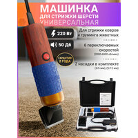На корпусе находится переключатель с 6 режимами скорости. В комплект входят две насадки, каждая из которых позволяет выбрать нужную длину: 3 мм, 6 мм, 9 мм или 12 мм — удобно как для ухода за шерстью, так и для работы по коврам.