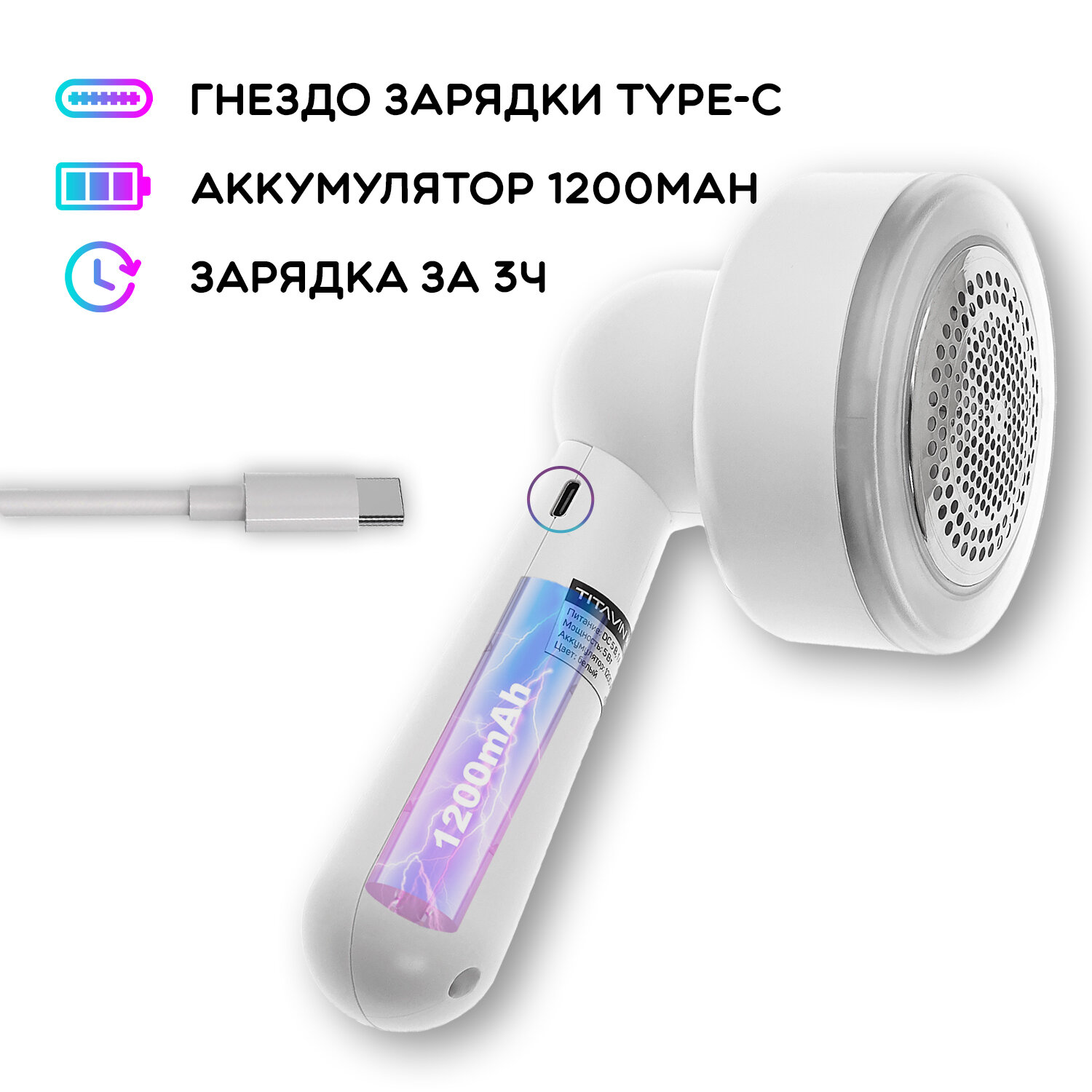 Купить Машинка для удаления катышек и ворса беспроводная, аккумуляторная TITAVIN TI-PRM001 с доставкой по всей России.