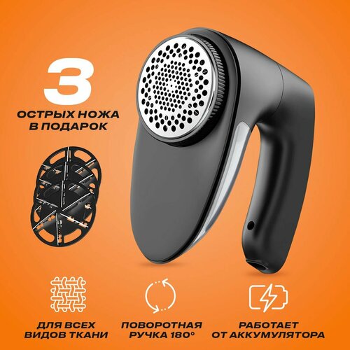 Вращающаяся на 180 градусов рукоятка имеет эргономичную форму для удобства эксплуатации. Полупрозрачный резервуар для срезанных катышков легко снимается, чтобы произвести очистку. Устройство функционирует от энергоемкого аккумулятора, который длительно поддерживает автономную работу.