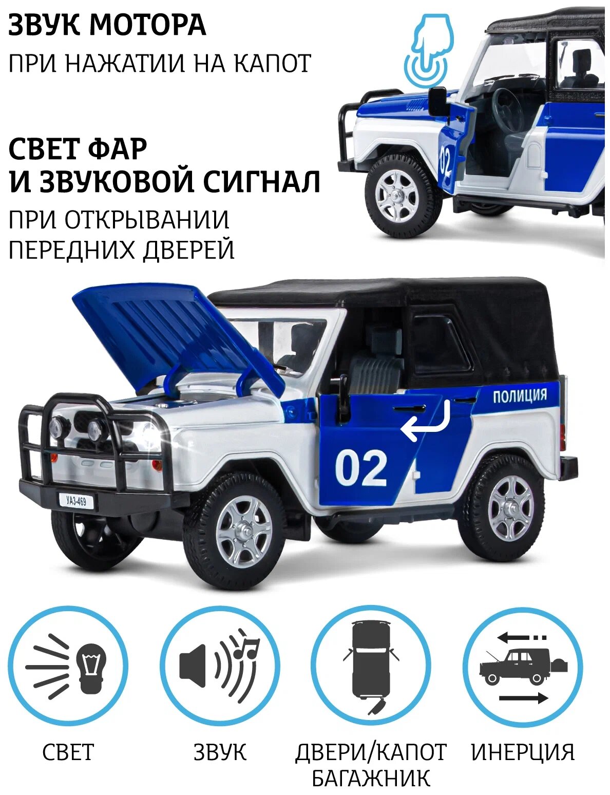 Купить Машинка Джамбо Тойс JB1200146, УАЗ-469 Полиция, коллекционная, инерционная с доставкой по всей России.