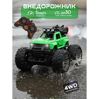 Внедорожник вездеход на аккумуляторе. Размеры 12х15,5х13,5. Пульт управления, резиновые колеса, имитация дыма, свет фар. Машинка может подниматься в гору до 45 градусов, передвигается по любой поверхности: грунт, песок, свет. Крутые маневры и трюки, движение во все стороны, разворот на 360 градусов. Чтобы включить имитацию дыма, залейте воду в заднюю часть машинки с помощью специального резервуара в комплекте. Отличный подарок для юного любителя гонок. Гоночный вездеход выполнен максимально детализировано. Имеет резиновые колеса и полный привод. Внедорожник оснащен 4-мя мощными колесами, что обеспечивает машинке легкую проходимость, позволяя совершать крутые маневры и выполняет акробатику. В комплект входит: машинка-вездеход-джип, пульт, отвертка, бутылочка, отвертка, USB зарядка. Максимальная скорость: около 4-5км/ч. Частота: 2.4 ГГц. Дальность пульта управления: около 20м. Батарея Аккумулятор: 3,7V 500 мАч. Размер машинки: 15х13х13см. Для работы пульта управления необходимы батарейки 2хАА 1,5V (не входят в комплект).