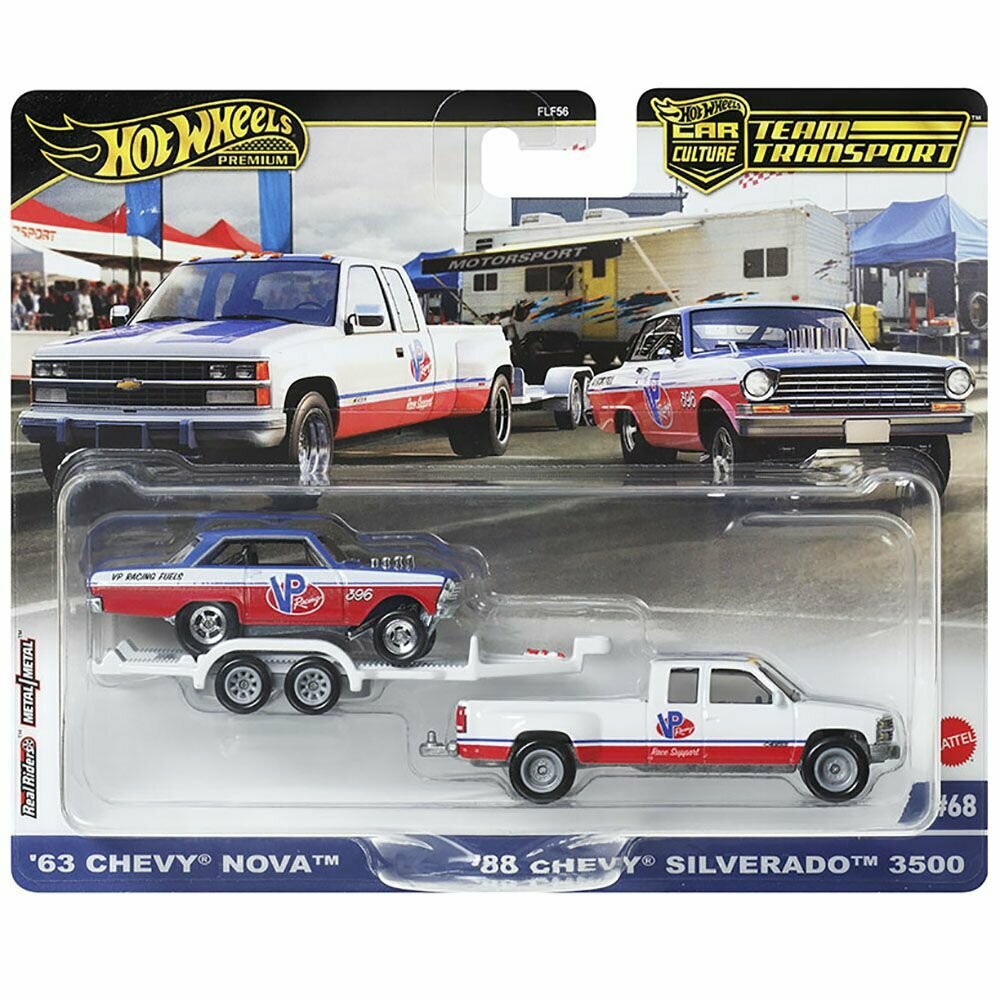 Машинка HOT WHEELS TEAM TRANSPORT 1/64 63 Chevy Nova & 88 Chevy Silverado 3500: сравнение цен, характеристики, фото, актуальное наличие и цены.