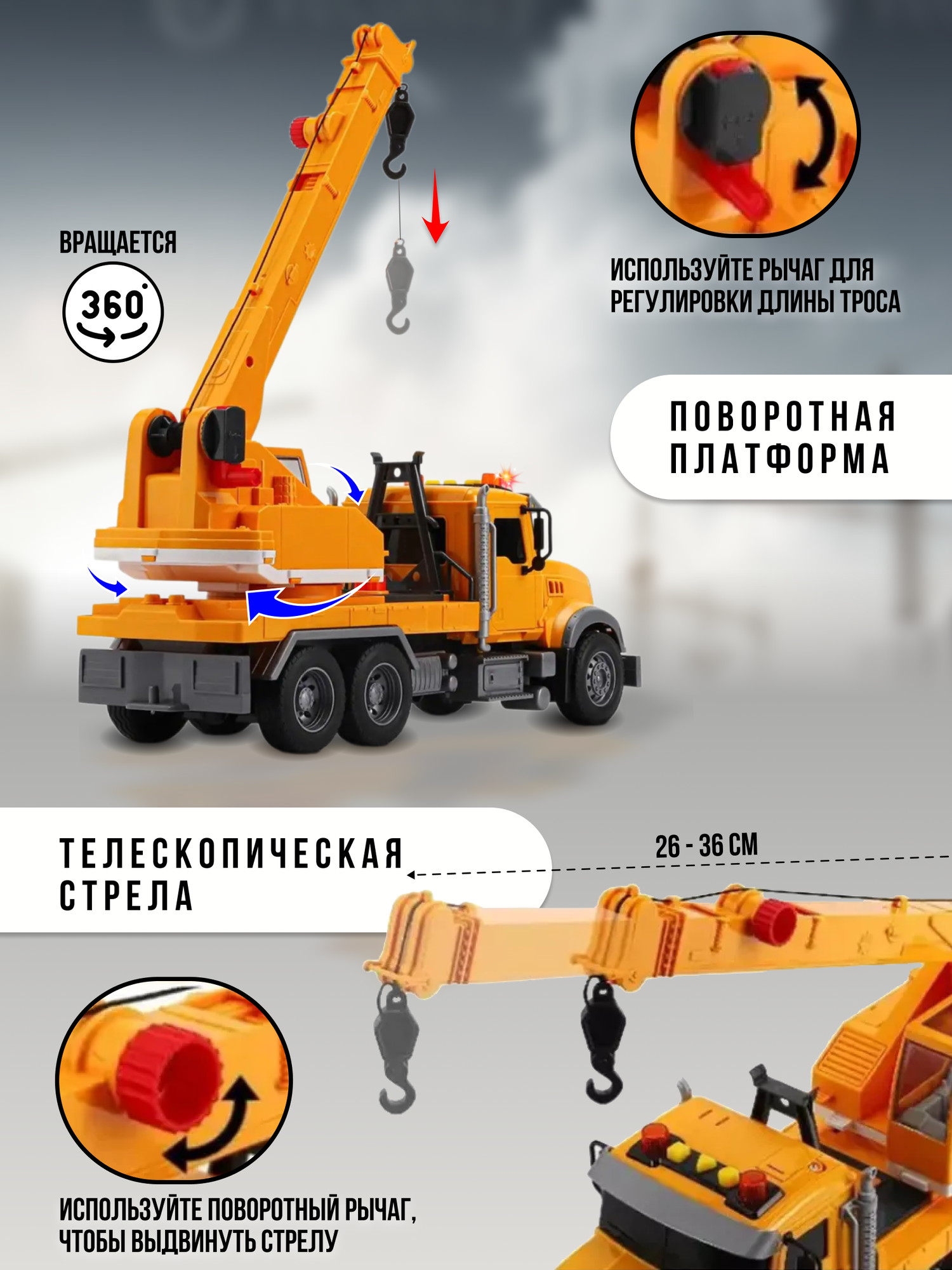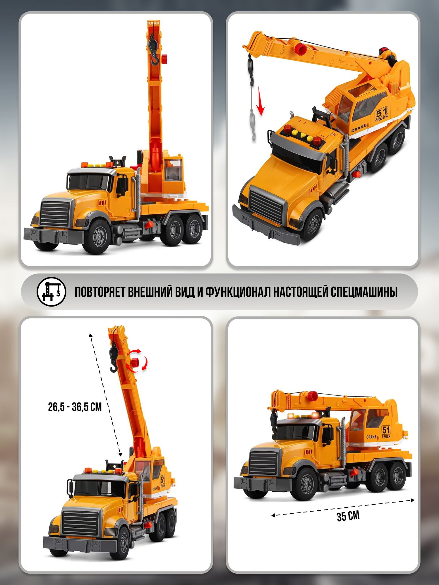 Машинка игрушечная спецтехника инерционный подъемный автокран длина 34,5 см, со светом и звуком: сравнение цен, характеристики, фото, актуальное наличие и цены.