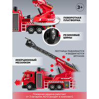 Купить Машинка инерционная Пожарная с телескопической лестницей, стреляет водой, звук, свет, красный, JB0405415 с доставкой по всей России.