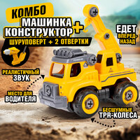Купить Машинка конструктор с шуруповертом и отверткой 1TOY Горстрой, автокран игрушка для мальчиков с доставкой по всей России.