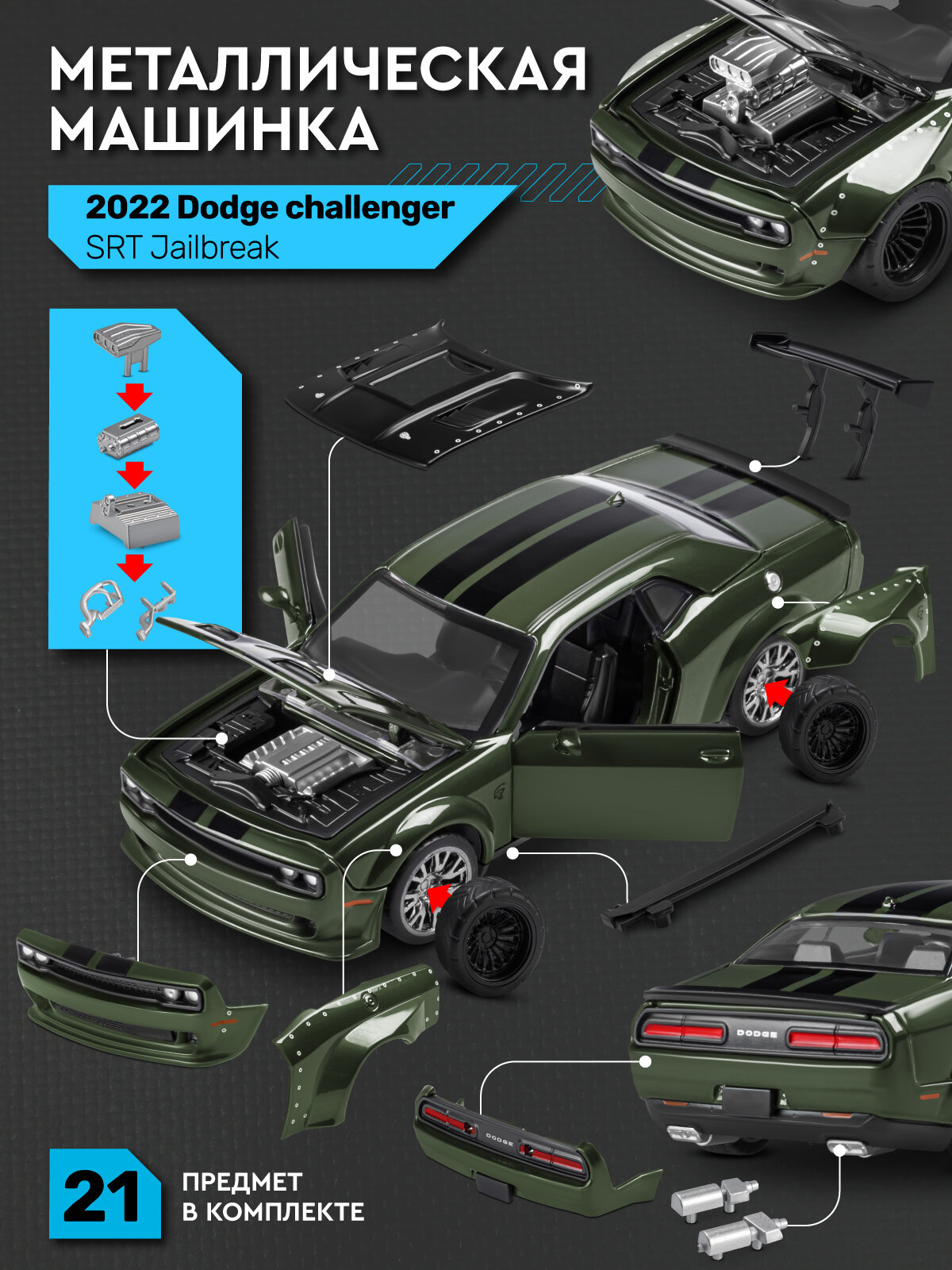 Машинка металлическая Dodge challenger SRT Jailbreak, сборная модель, набор для тюнинга, собери сам, М1:36, JB1251728: сравнение цен, характеристики, фото, актуальное наличие и цены.