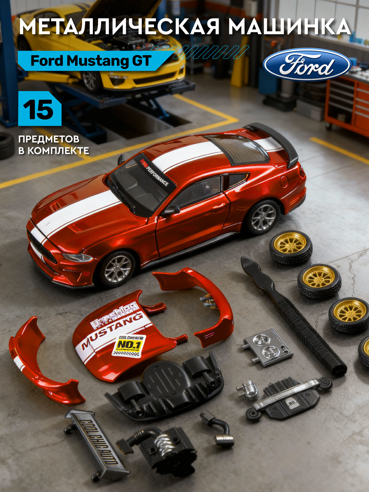 Машинка металлическая Ford Mustang GT, в комплекте набор для тюнинга, М1:43, JB1251727: сравнение цен, характеристики, фото, актуальное наличие и цены.