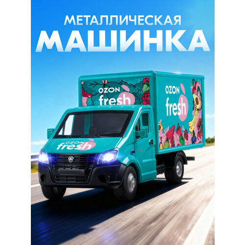 Инерционная металлическая машинка ГАЗель NEXT OZON fresh - модель в масштабе 1:28, выполненная узнаваемом дизайне бренда Ozon. С ней можно создавать множество увлекательных игровых сюжетов, связанных с доставкой товаров в игрушечном городе. Машинка станет прекрасным подарком, а также дополнит игрушечный автопарк маленького автолюбителя. Модель машинки детально проработана и выполнена в узнаваемом дизайне как у настоящих автомобилей, которые можно часто встретить на улицах. Благодаря своей реалистичности, масштабная модель подойдет для коллекционирования. У машинки открываются передние двери, капот и дверки на кузове. Внутри можно перевозить небольшие предметы. При нажатии на капот загорятся фары и включится звук, что сделает игру более реалистичной. Игрушечная машинка оснащена инерционным механизмом. Чтобы она поехала вперед, на неё нужно немного надавить и откатить назад. Колеса с резиновыми покрышками, детально проработанный салон, моторный отсек, фары, фирменная раскраска - всё как у настоящего автомобиля. Ребенок будет с удовольствием играть с такой машинкой дома и на улице, брать с собой в гости или в путешествие. Игрушка развивает мелкую моторику, реакцию и координацию движения, расширяет кругозор и знакомит с техникой.